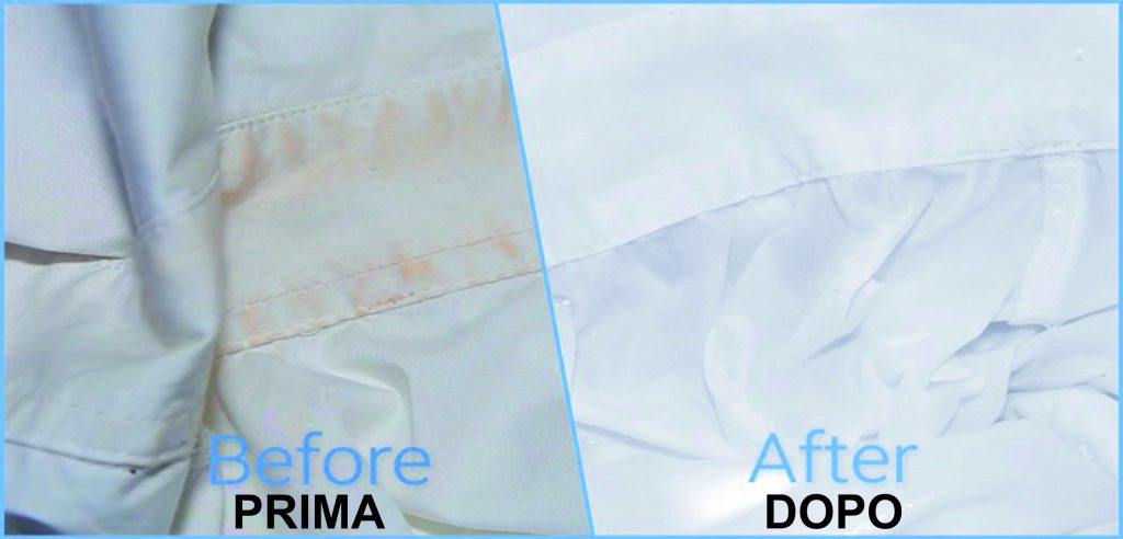 Queste macchie si formano a causa della reazione tra i candeggianti utilizzati nelle lavanderia industriale (ipoclorito di sodio) con determinate sostanze presenti negli olii per massaggi utilizzati nei centri benessere .