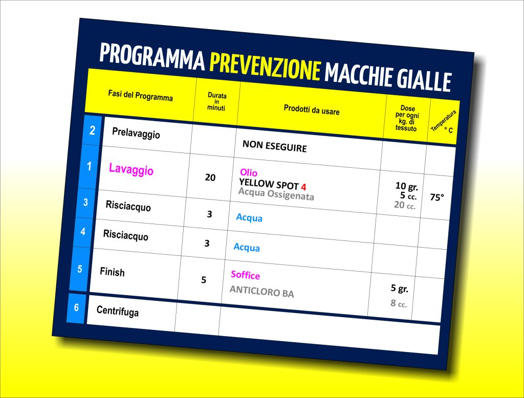 Per la prevenzione della formazione delle macchie gialle procedere con il seguente programma di lavaggio: